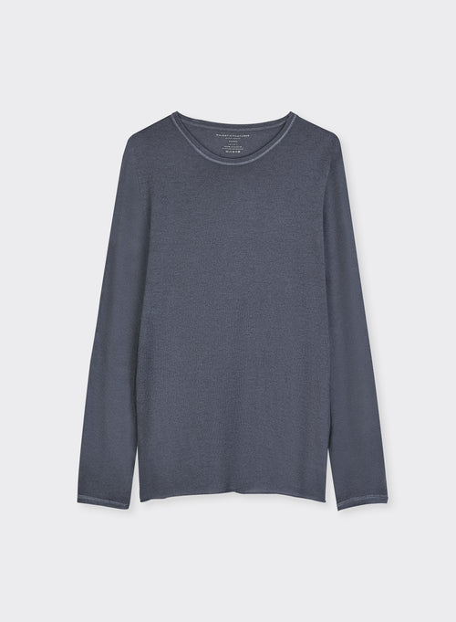 Camiseta azul de manga larga con cuello redondo en algodón orgánico / elastano - MAJESTIC FILATURES