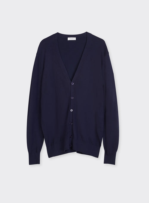 Navy Polo Polo Long Sleeve Merino Wool - MAJESTIC FILATURES