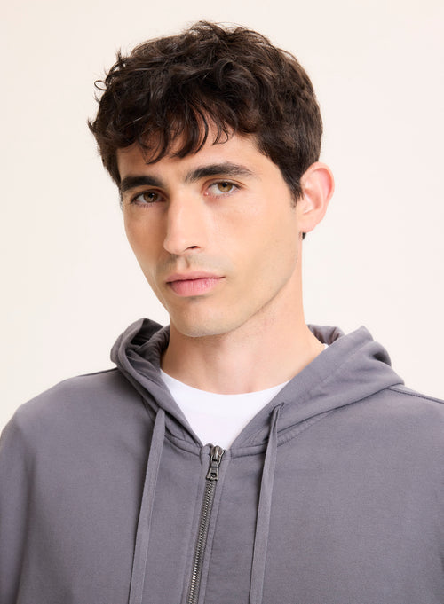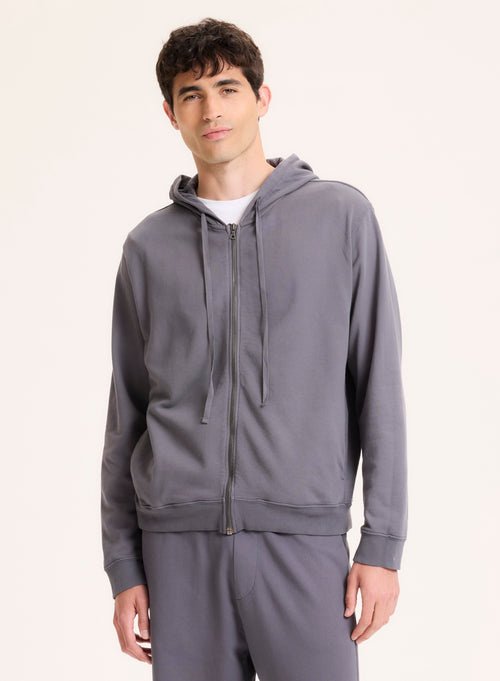 Grey Organic Cotton Long Sleeve Hooded Vest